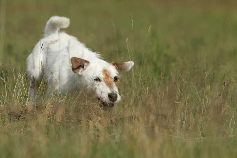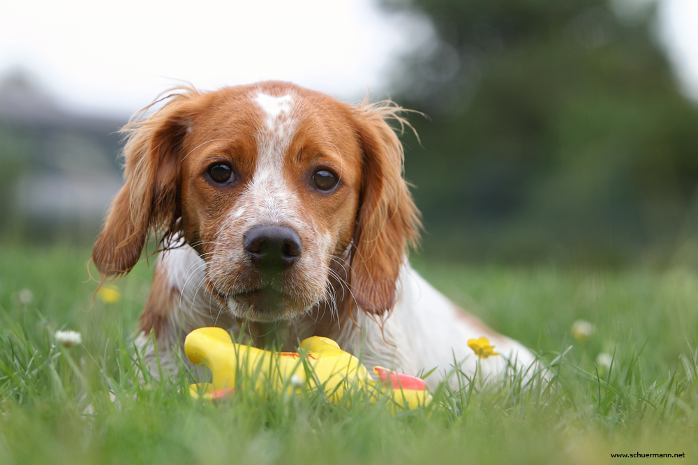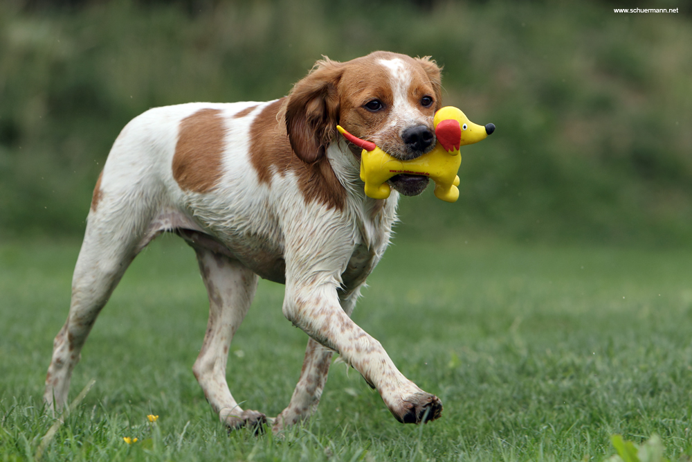 Bretonen-Hündin Finja verbrachte ein paar Tage bei uns und genoss die Stunden an unserer Hundewiese sehr.